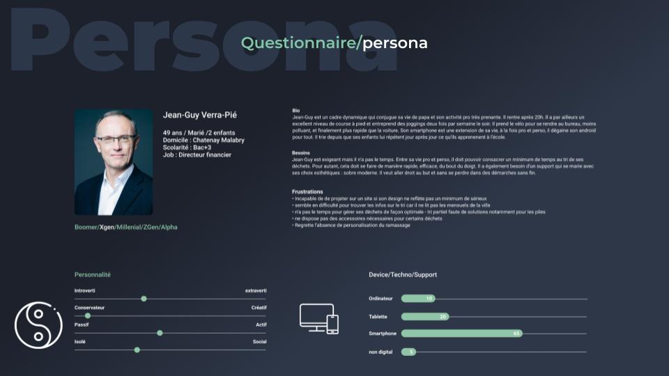 Dans ce cas précis, des rencontres avec des riverains, des interviews, des QCM (disponibles ici) ont permis de dresser ces portraits robots qui ont servi de base à la réflexion ergonomique du site, et des prototypes aboutis.